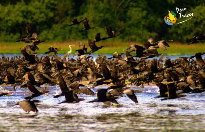 This protected area contains 85 lakes that are home to 250 species of fish as well as both pink and gray fresh-water dolphins. In the jungle and flooded forest of the reserve 132 mammal species (13 of which are primates), 449 bird species and 150 reptile and amphibian species have been documented. There are three distinct eco-systems in the Pacaya-Samiria Reserve and the largest variety of flora in Peru, including 22 species of orchids.
