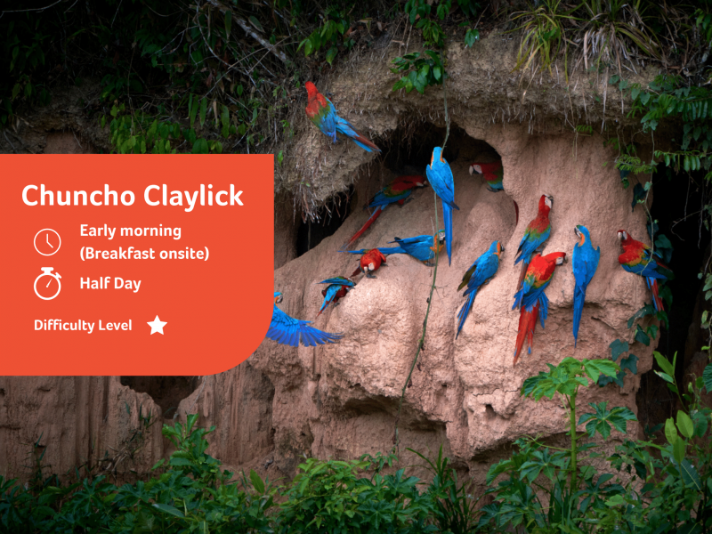 Disfrute de nuestras habitaciones construidas de forma natural y despierte con los sonidos de la selva en la mañana. Nuestras tarifas de habitación incluyen, transporte terrestre y fluvial hacia/desde Puerto Maldonado hasta el Albergue a través de nuestro servicio fijo de traslado de salida, actividades guiadas en grupo, todas las comidas y el alojamiento.