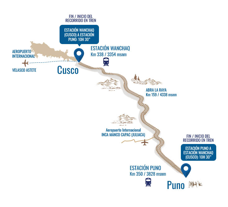 Puno-Cusco: Monday, Thursday, Saturday: 07:30/17:50Stations