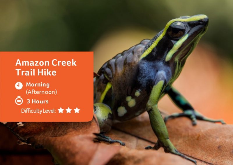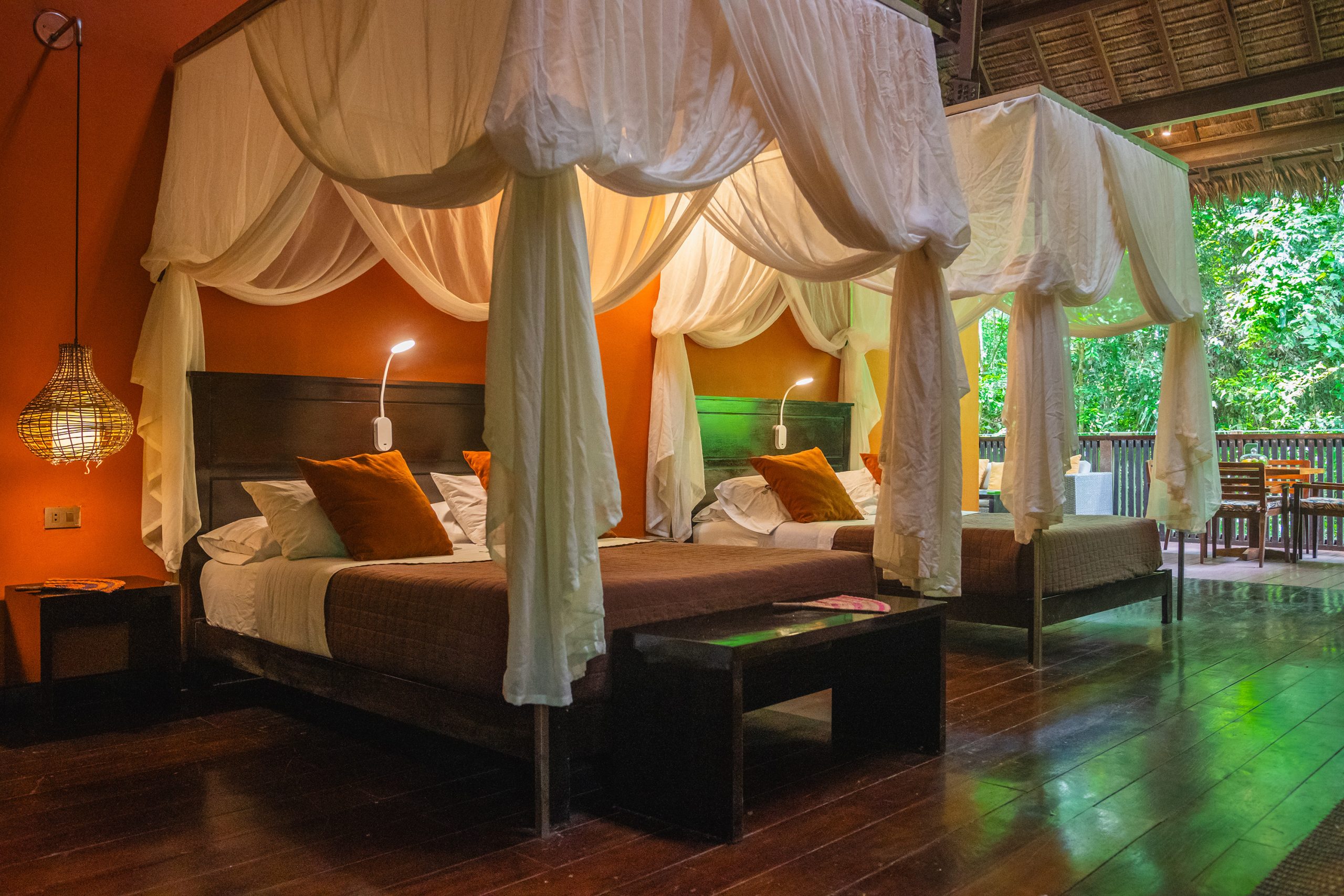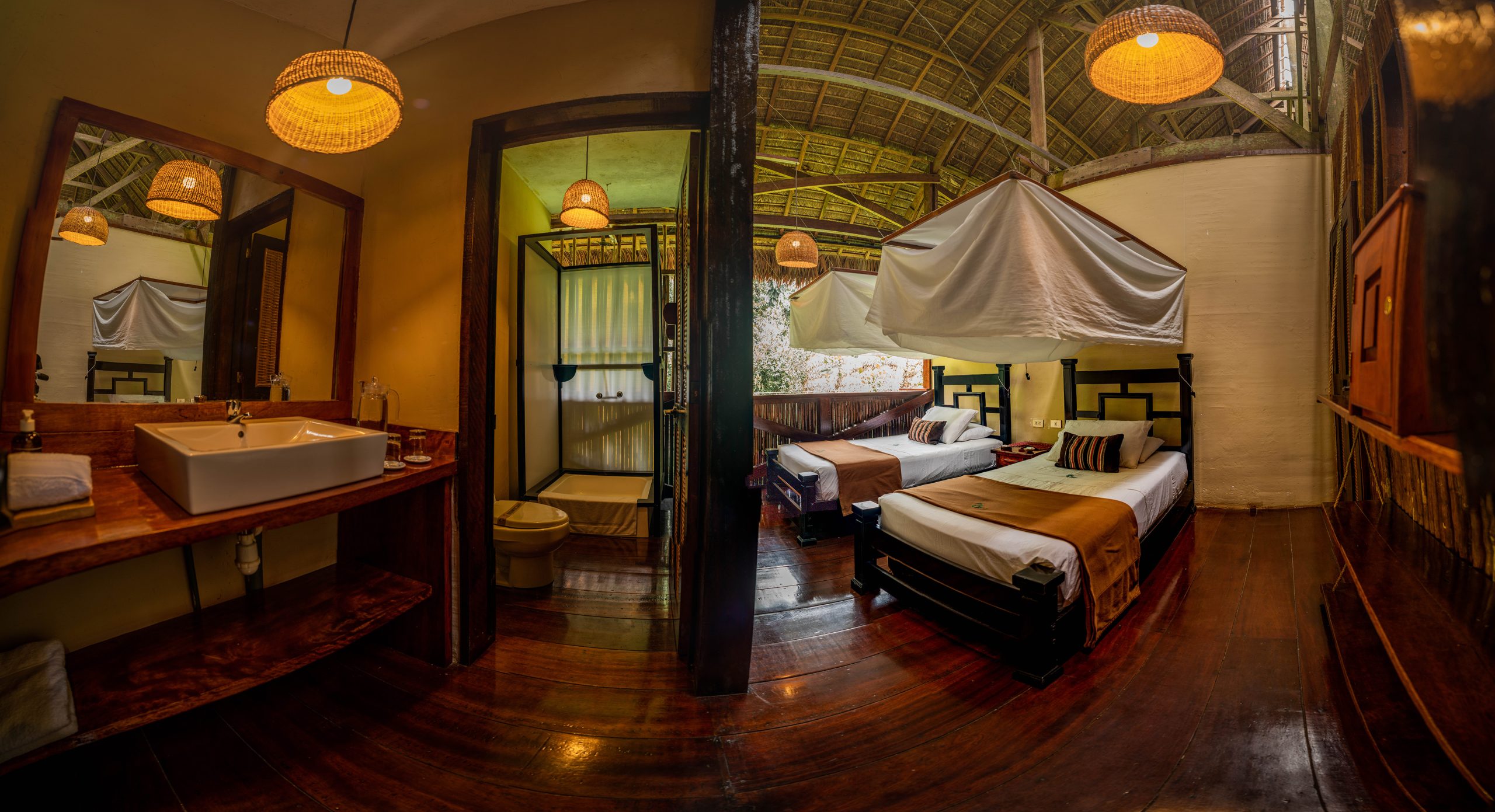 Enjoy the open wall facing the Amazon rainforest and awake with jungle sounds in the morning. Our room rates include all land and river transportation to/from Puerto Maldonado to the lodge thru our fixed departure shuttle service, guided activities in group, all meals, and accommodation.