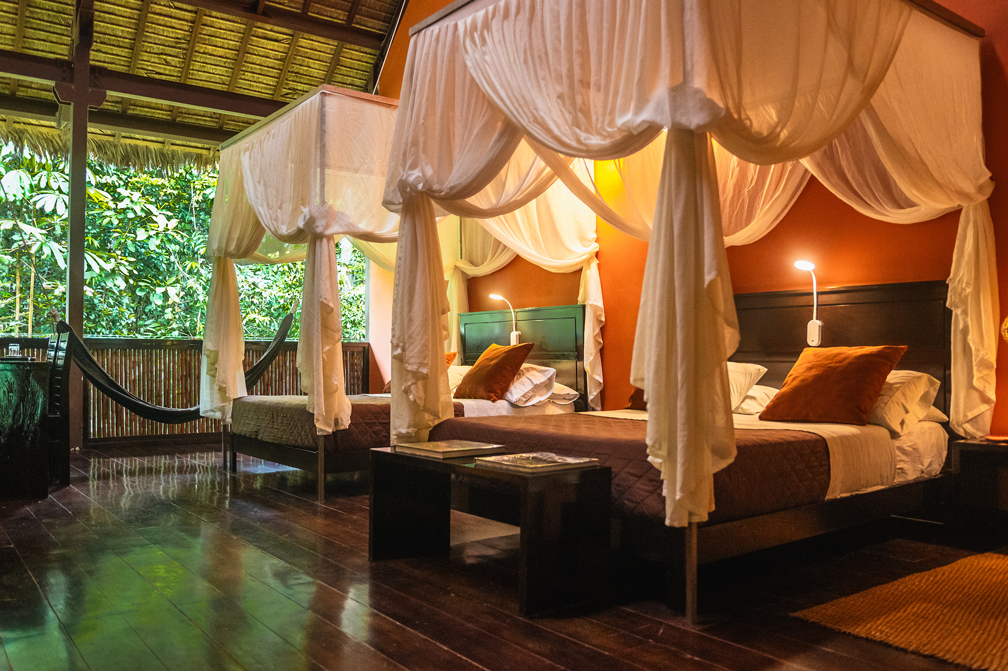While you’re resting after a day full of wildlife adventures, you can enjoy the many relaxing amenities we offer at the lodge. Take a nap in a comfy hammock or get a jungle-inspired massage for true R&R. Lovers of artisan goods can explore our exclusive boutique of locally made crafts, while curious tipplers can try rainforest-inspired cocktails and classics like the Pisco Sour in our lodge bar.